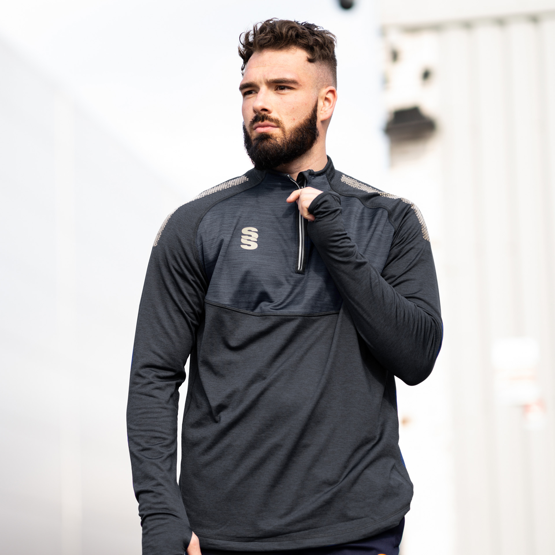 The Dual Performance Top is made from Melange Pro-Polyester with a light brushed feel and soft inner fleece lining. This keeps you warm and cosy but ready for action at a moments notice. It features a subtle marl printed body, 1/4 zip neck detail for breathability, with reflective zip detailing, and available dual print options on both shoulders. To finish, our Surridge SS logo is situated on the right chest, with the option to change its colour alongside the print colours.