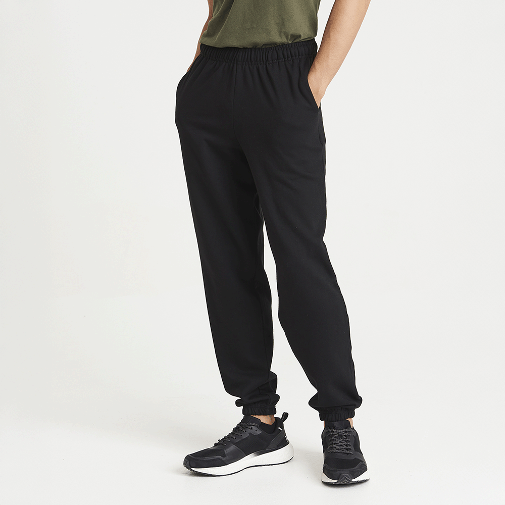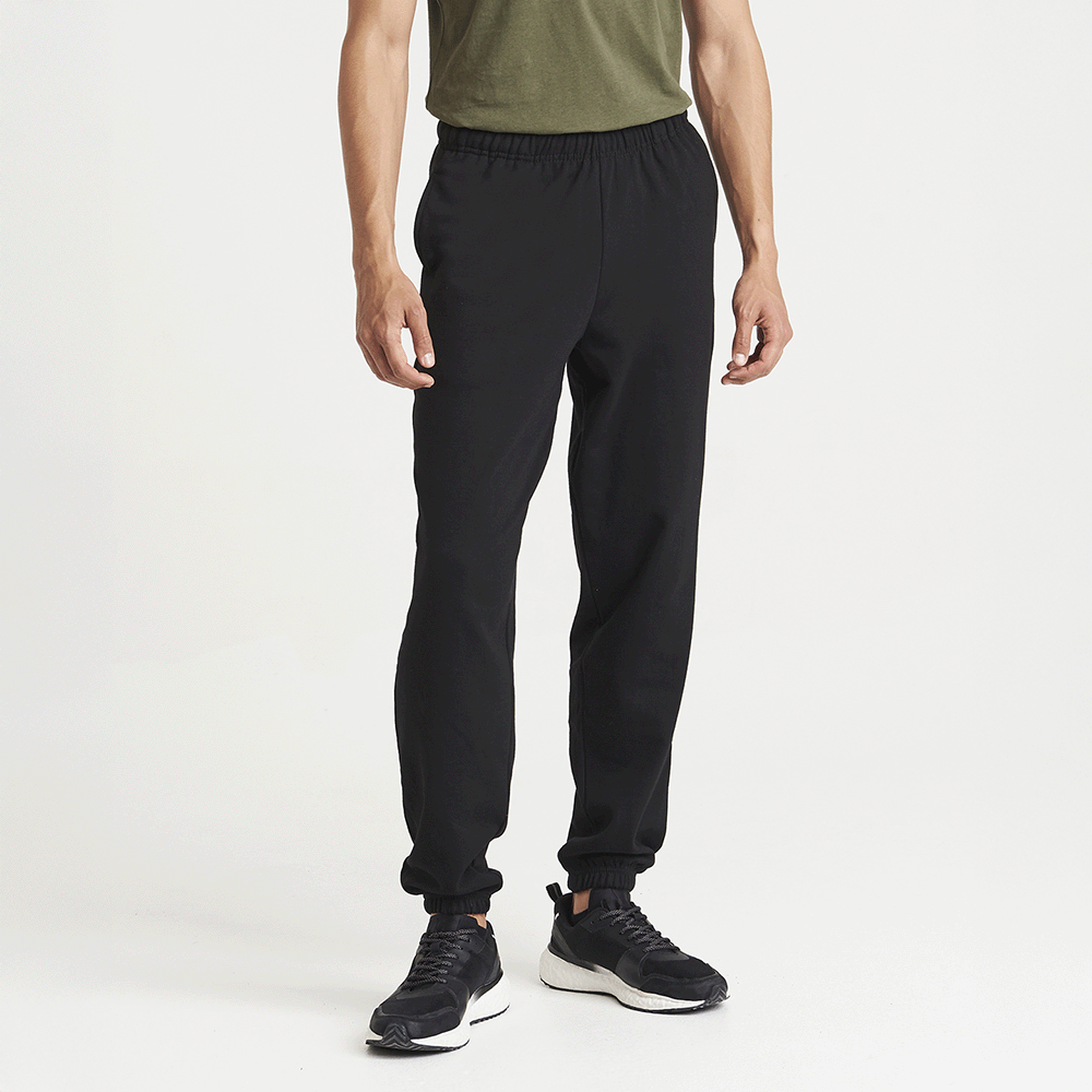 Cuffed leg opening. Elasticated waist with inner drawcord. Side pockets. Worldwide Responsible Accredited Production (WRAP) certified production. Soft cotton faced fabric creates ideal printing surface. Simple tear out label makes it perfect for rebranding. Brushed inner fleece. WRAP certified. SEDEX certified. Vegan certified.